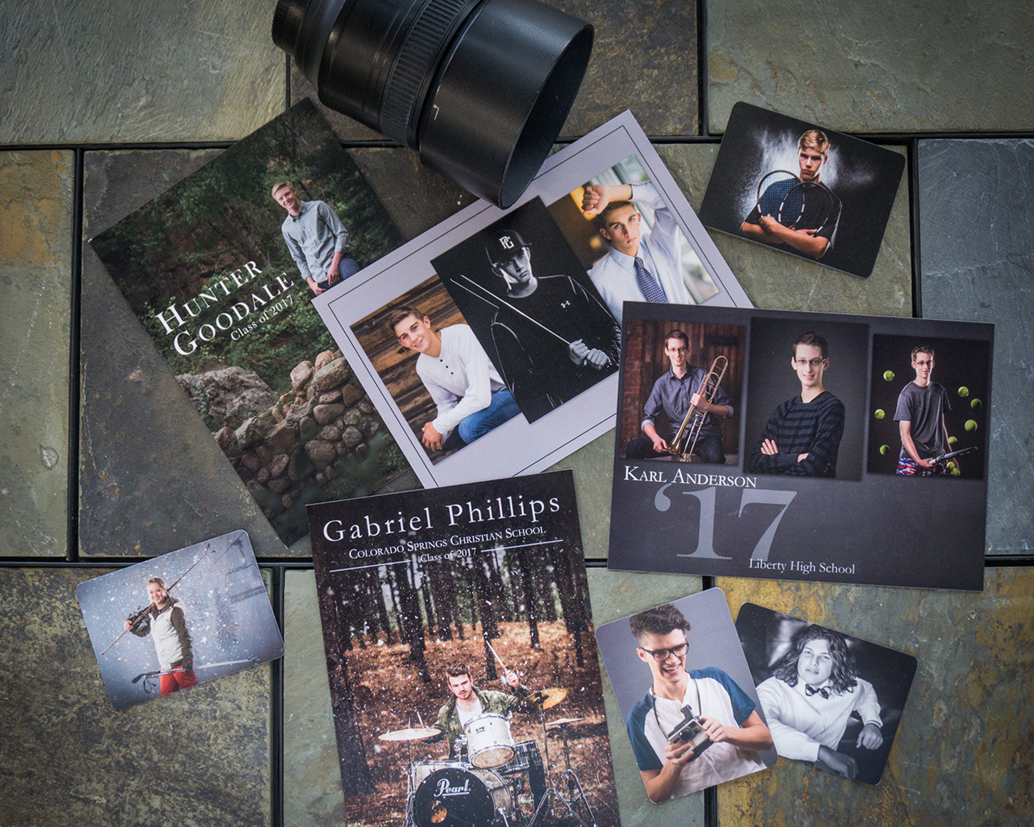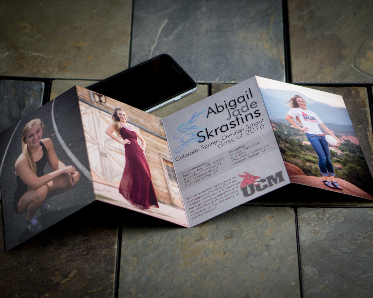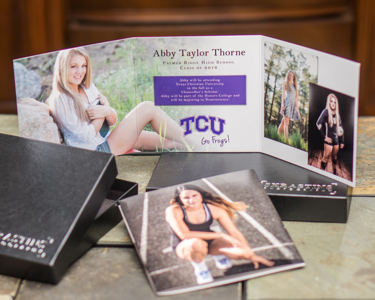 Room for up to four of your favorite portraits and graduation details. Mailing envelopes included.
